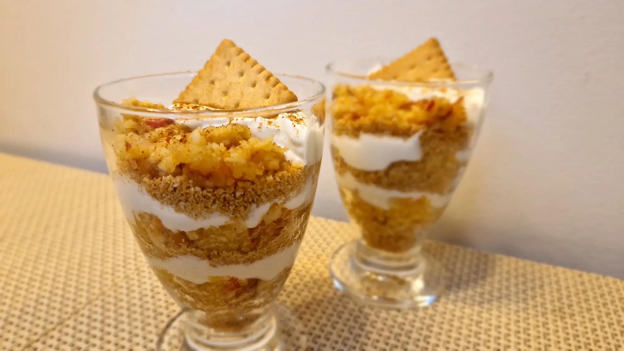 Ten deser 艂膮czy w sobie delikatn膮 s艂odycz z od偶ywczymi sk艂adnikami, tworz膮c zdrow膮 i smaczn膮 przek膮sk臋. Skyr waniliowy dostarcza solidnej porcji bia艂ka, kt贸re wspiera regeneracj臋 organizmu i pomaga na d艂u偶ej zachowa膰 uczucie syto艣ci. Jab艂ko wzbogaca deser o naturalne cukry, b艂onnik oraz witaminy, wspieraj膮c prac臋 uk艂adu trawiennego. Dodatek mas艂a orzechowego nadaje kremowej konsystencji i subtelnie podkre艣la smak, uzupe艂niaj膮c jednocze艣nie danie o niezb臋dne kalorie. To doskona艂y wyb贸r na szybki i warto艣ciowy posi艂ek w ci膮gu dnia.