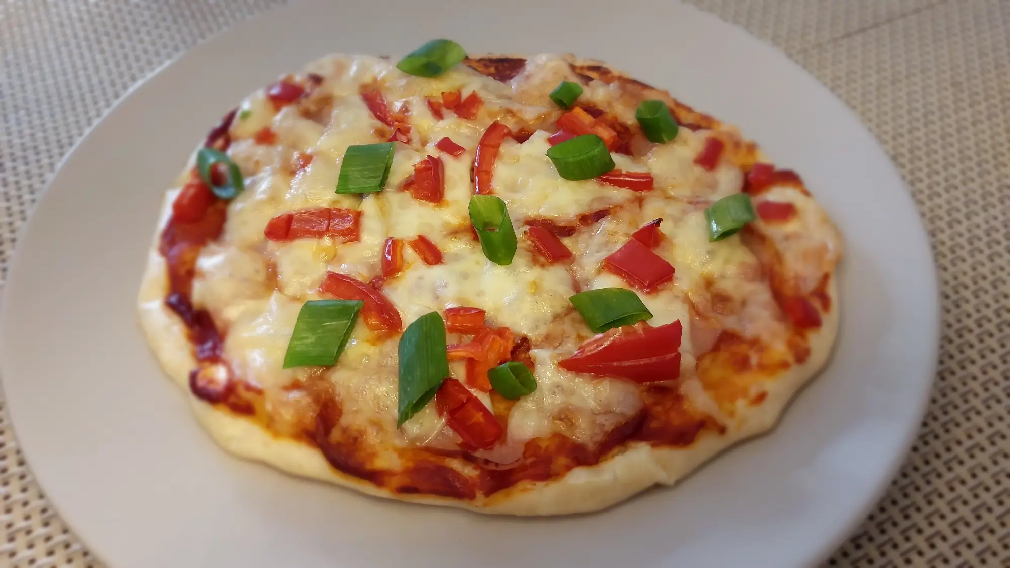 Ten przepis na pizzę jest propozycją dania wysokobiałkowego. Jajko oraz serek wiejski to doskonałe źródła pełnowartościowego białka, które wspiera budowę mięśni i regenerację organizmu. Dodatek papryki i szczypiorku wnosi do przepisu kluczowy dla zdrowia jelit błonnik pokarmowy, a także dawkę witamin i antyoksydantów, chroniących nasz organizm przed stresem na poziomie komórkowym i nowotworami.
