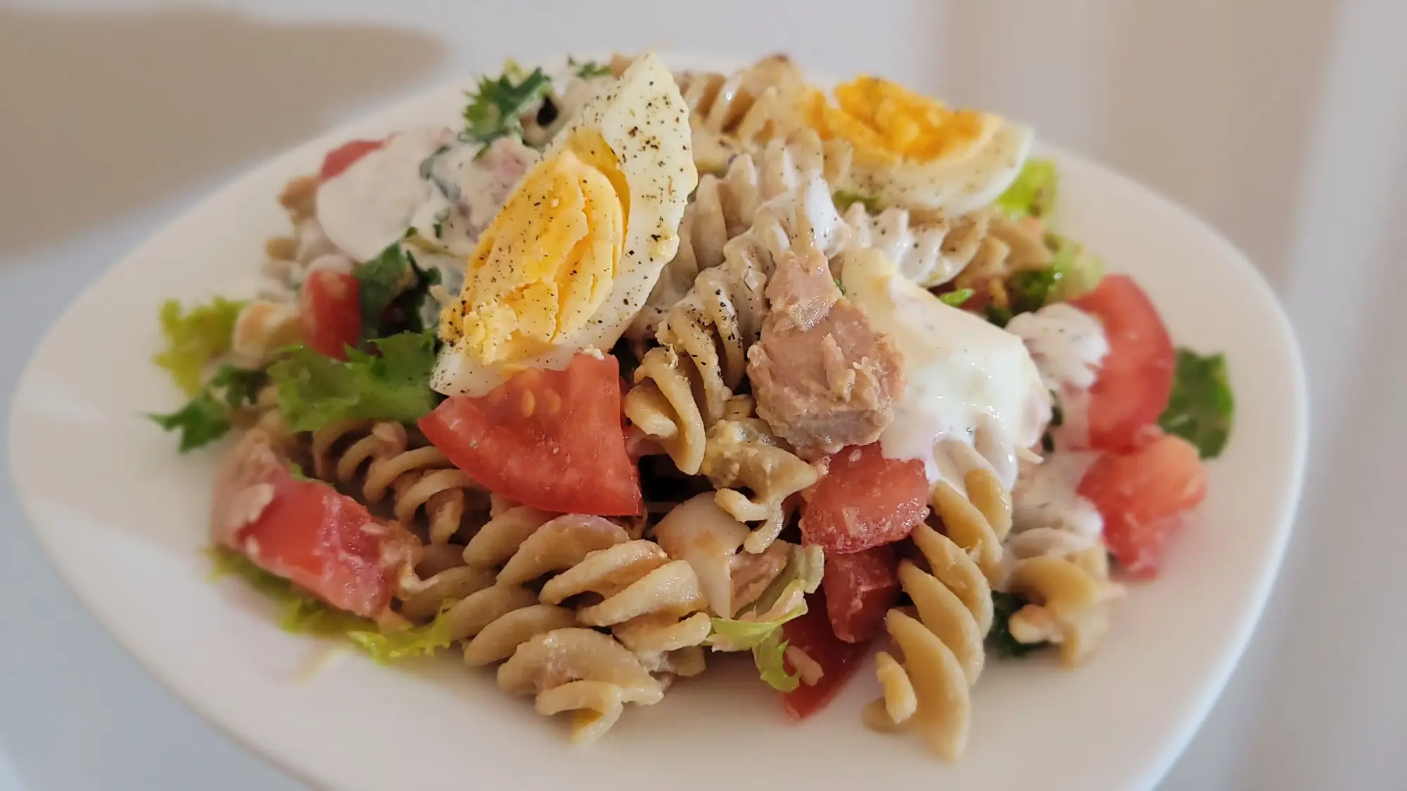 Taka sałatka jest zdrową i szybką propozycją na pożywny obiad lub kolację. Zawarte w niej warzywa dostarczą ci błonnika, który poprawi pracę jelit i zwiększy uczucie sytości po posiłku. Tuńczyk wraz z jajkiem stanowią doskonałe źródło pełnowartościowego białka, które przyczyni się do odbudowy tkanek całego orgaznimu. Zawarta w jajku cholina wspomaga pracę mózgu, a dostępne w warzywach antyoksydanty ochraniają komórki naszego ciała przed negatywnymi skutkami stresu oksydacyjnego.