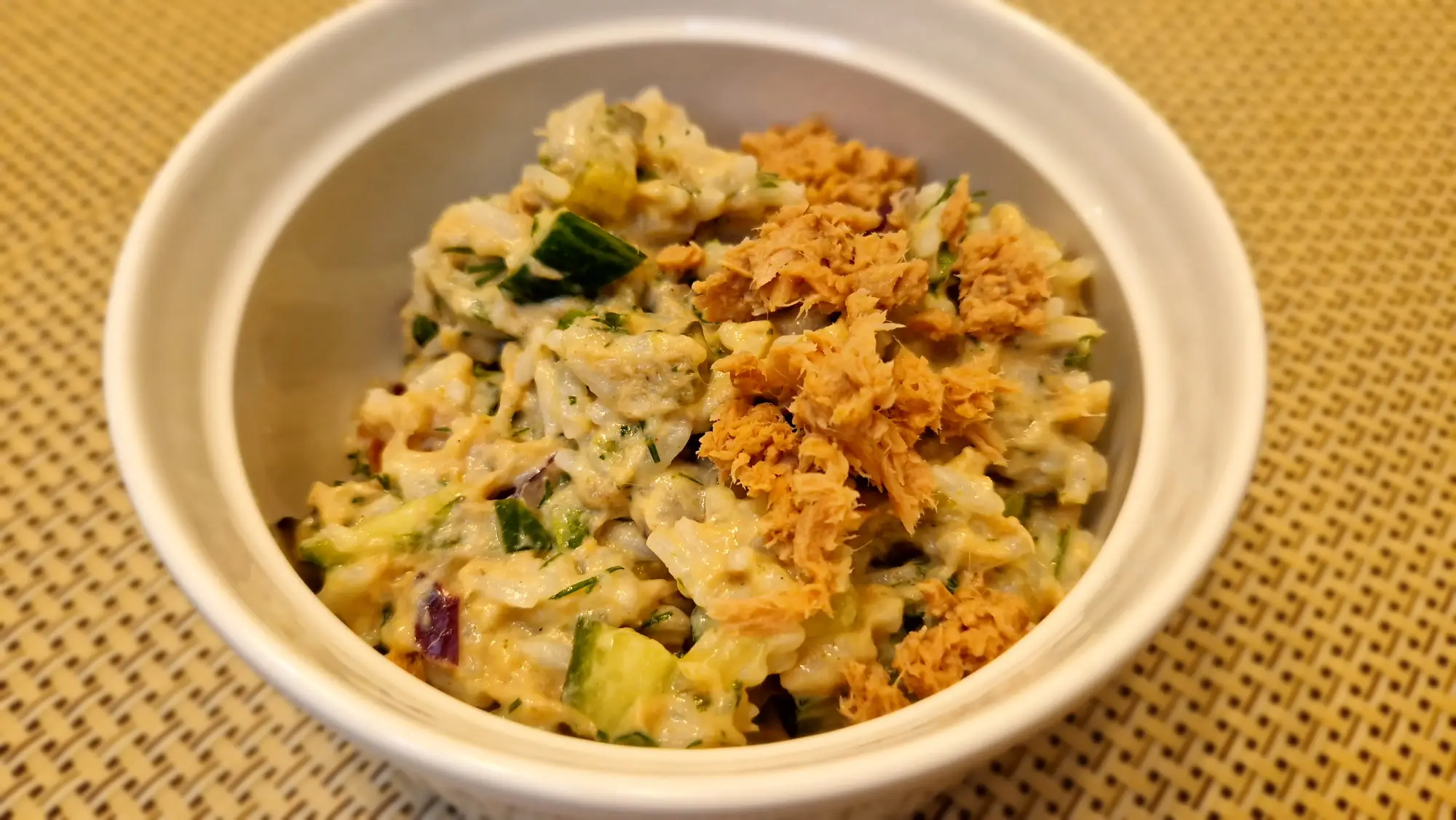 Sałatka jest lekkim, a jednocześnie pożywnym posiłkiem, dostarczającym zbilansowaną ilość białka, tłuszczów i węglowodanów. Dzięki obecności tuńczyka, jogurtu i ryżu, stanowi dobre źródło łatwostrawnego białka oraz energii, wspierając regenerację organizmu. Dodatek warzyw, takich jak rukola, pomidor i ogórki, dostarcza witamin, minerałów oraz błonnika wspomagającego trawienie. Jest to rozwiązanie na lekki obiad, kolację lub dodatek do innych dań.