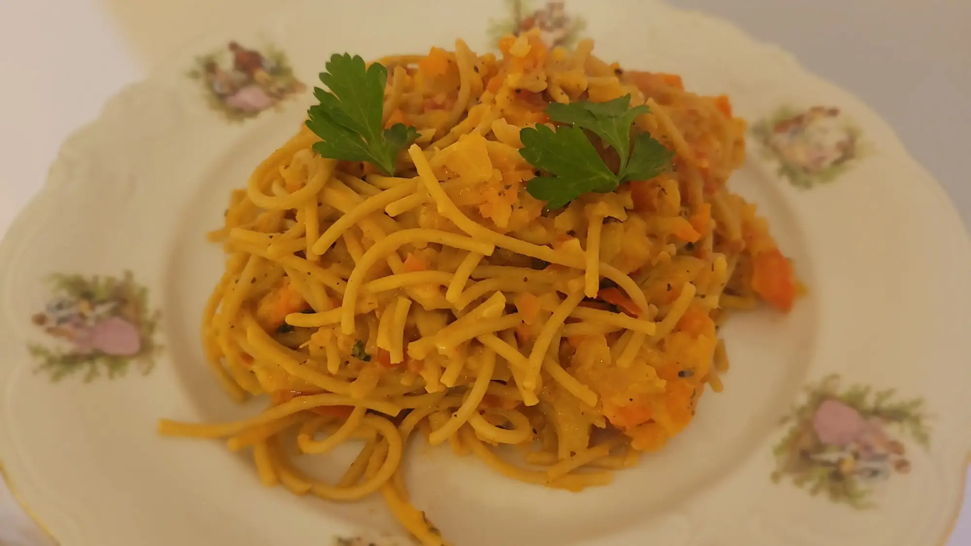 Cukinia jest warzywem niskokalorycznym i często stosowana jest do dań jako niejaki ich wypełniacz, produkt który zwiększa objętość zjadanego posiłku. Ale warto pamiętać, że warzywo to charakteryzuje się niskim indeksem glikemicznym - po zjedzeniu nie podnosi ono mocno poziomu glukozy we krwi. Dodatkowo, tak jak uwzględniona w przepisie marchewka, cukinia zawiera pokaźną ilość witaminy A, a także C. Witaminy te przyczyniają się do prawidłowego działania zmysłu wzroku, układu odpornościowego, a także utrzymania dobrej kondycji włosów, skóry i paznokci.