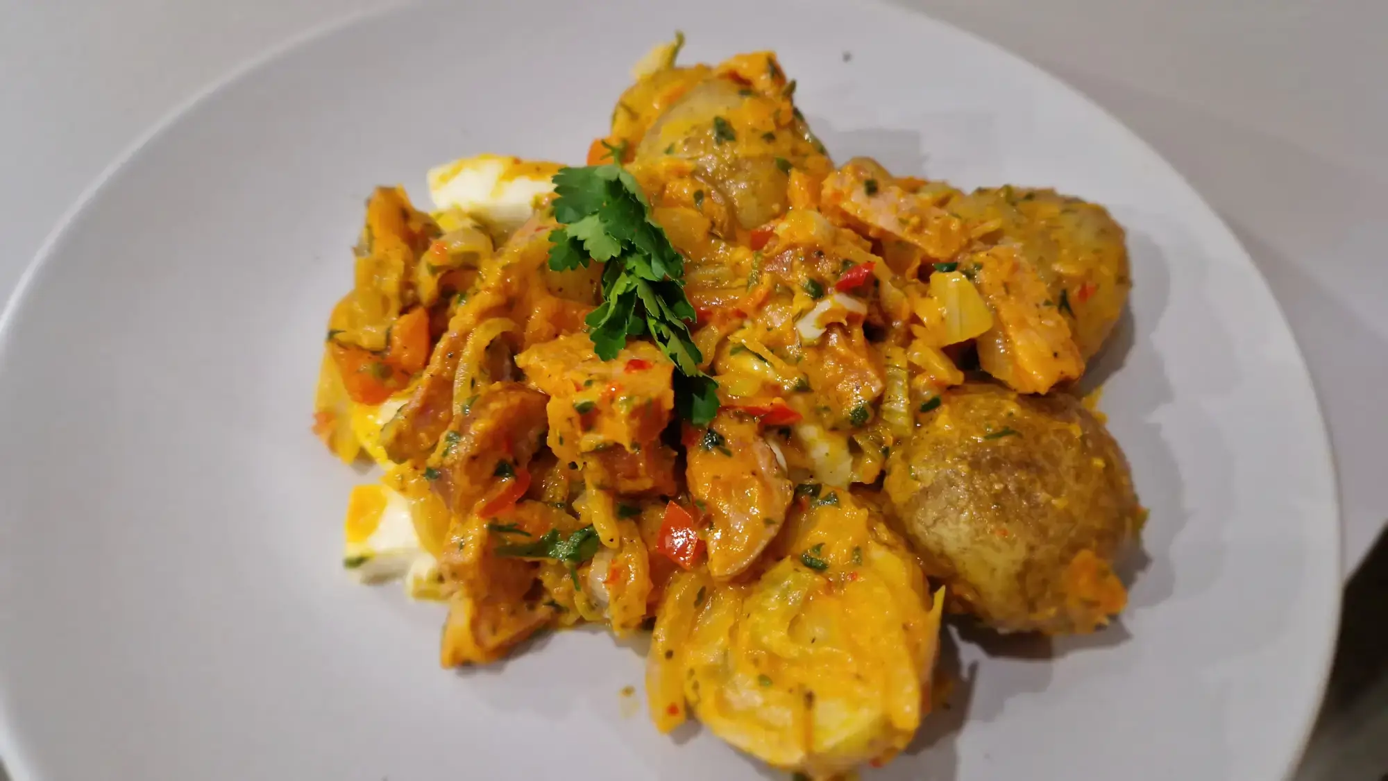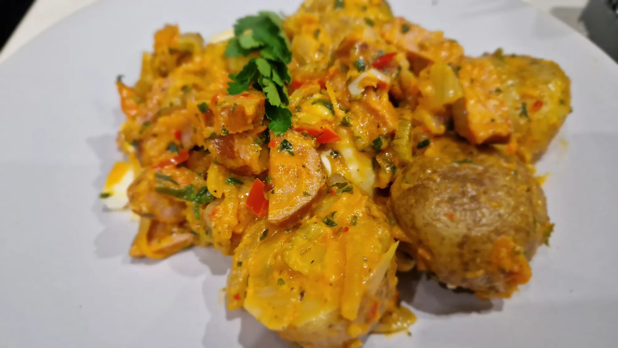 To danie jest sycące i energetyczne, głównie dzięki połączeniu ziemniaków i kiełbasy. Dostarcza umiarkowanej ilości białka, a także sporo tłuszczu, zwłaszcza z kiełbasy, pesto i masła, co wpływa na jego wysoką kaloryczność. Ziemniaki stanowią dobre źródło węglowodanów oraz potasu, a dodatek warzyw i ziół zwiększa zawartość witamin i błonnika. Mozzarella wnosi dodatkowe białko i wapń, poprawiając również smak i konsystencję potrawy. Całość najlepiej sprawdzi się jako pożywny obiad, szczególnie dla osób potrzebujących większej ilości energii.