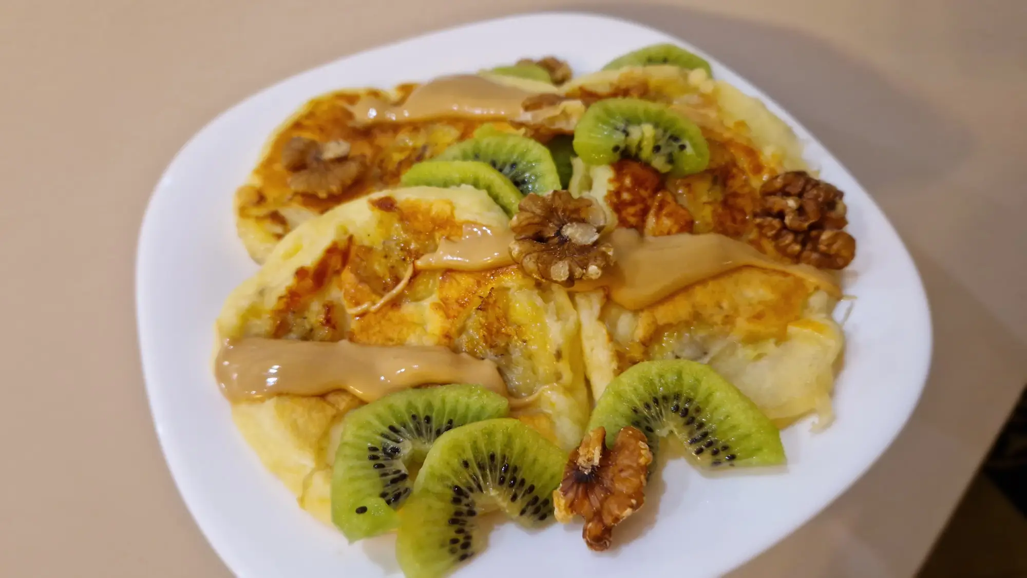 To danie jest dobrym 藕r贸d艂em bia艂ka dzi臋ki skyrze i jajkom, co sprzyja syto艣ci i regeneracji. Zawiera sporo w臋glowodan贸w, kt贸re dostarczaj膮 energii, szczeg贸lnie dzi臋ki m膮ce i bananowi. T艂uszcze pochodz膮 g艂贸wnie z oleju i jajek, nadaj膮c potrawie odpowiedni膮 struktur臋 i smak. Ilo艣膰 b艂onnika jest umiarkowana, wi臋c dla lepszego efektu mo偶na doda膰 np. owoce lub pe艂noziarnist膮 m膮k臋. Ca艂o艣膰 sprawdza si臋 jako syc膮cy posi艂ek, np. na 艣niadanie lub po treningu.