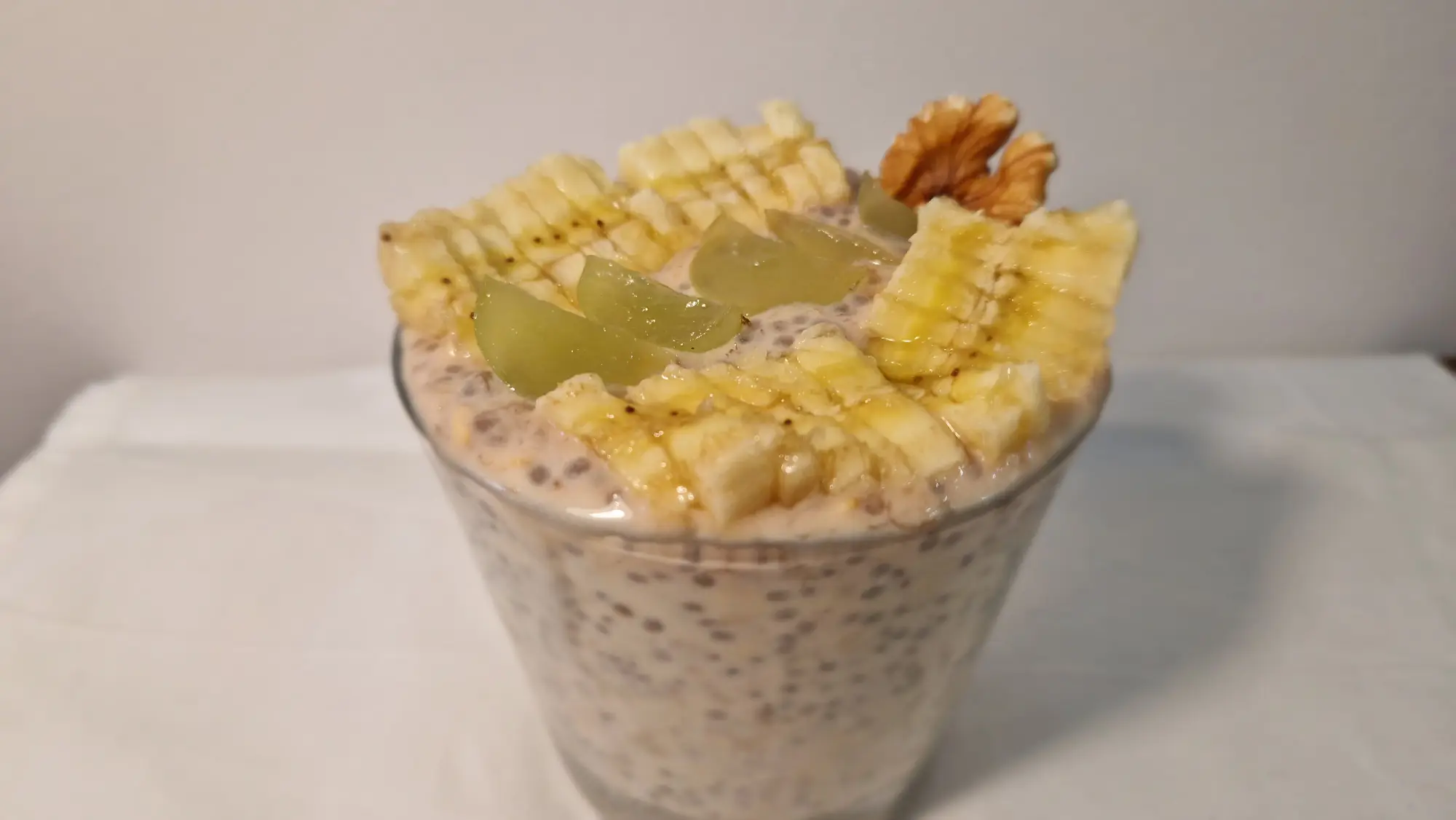 To śniadanie jest pełnowartościowe i dobrze zbilansowane pod względem makroskładników. Dostarcza solidnej porcji energii z węglowodanów złożonych z płatków owsianych i banana, co sprzyja długotrwałemu uczuciu sytości i stabilnemu poziomowi cukru we krwi. Obecność masła orzechowego, nasion chia i mleka zapewnia dobrej jakości białko oraz zdrowe tłuszcze, które wspierają regenerację mięśni i pracę mózgu. Błonnik z owsa, banana i chia wspiera prawidłowe trawienie i korzystnie wpływa na florę jelitową. Dzięki połączeniu tych składników posiłek dostarcza nie tylko energii na cały poranek, ale także cennych witamin, minerałów i kwasów omega-3.