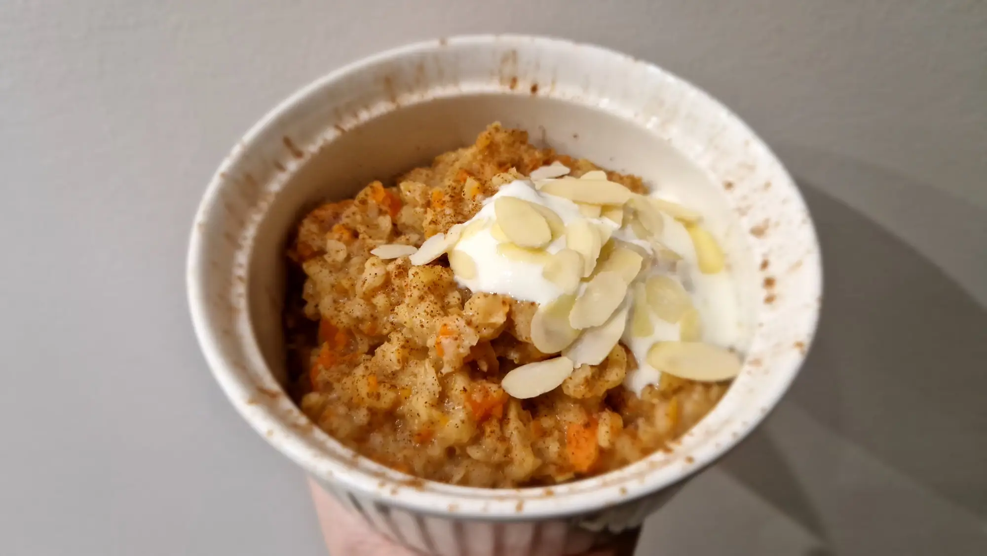 Ten posiłek to pełnowartościowa propozycja, która dostarcza organizmowi energii oraz cennych składników odżywczych. Owsianka z owocami i jogurtem to doskonałe źródło błonnika wspierającego trawienie oraz regulującego poziom cukru we krwi. Białko z mleka, jogurtu i migdałów wspomaga regenerację mięśni oraz daje uczucie sytości na dłużej. Zdrowe tłuszcze z płatków migdałowych korzystnie wpływają na pracę mózgu i serca, a naturalna słodycz jabłka i miodu sprawia, że posiłek jest nie tylko zdrowy, ale i smaczny. Dodatek cynamonu nie tylko podkreśla aromat, ale także wspomaga metabolizm i działa przeciwzapalnie.